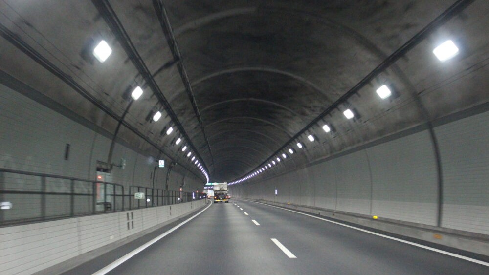 山側を向くとこんな感じ。まっすぐ行くとスーパー「ライフ」と「洋服の青山」のある交差点です。