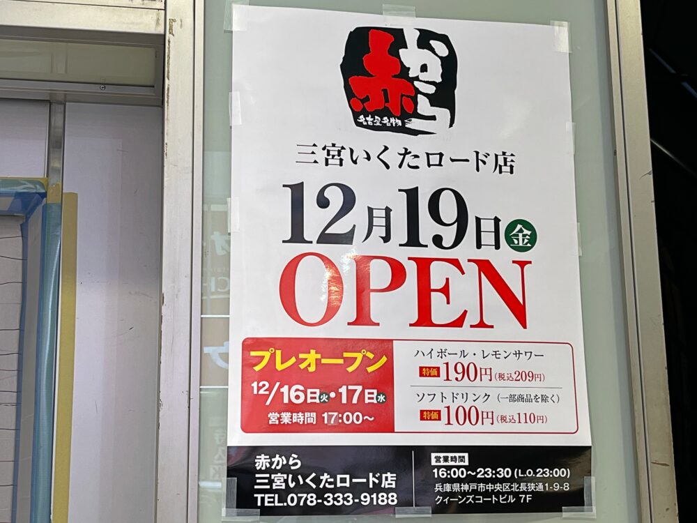 三宮のいくたロードに、『赤から』という鍋料理のお店ができています。