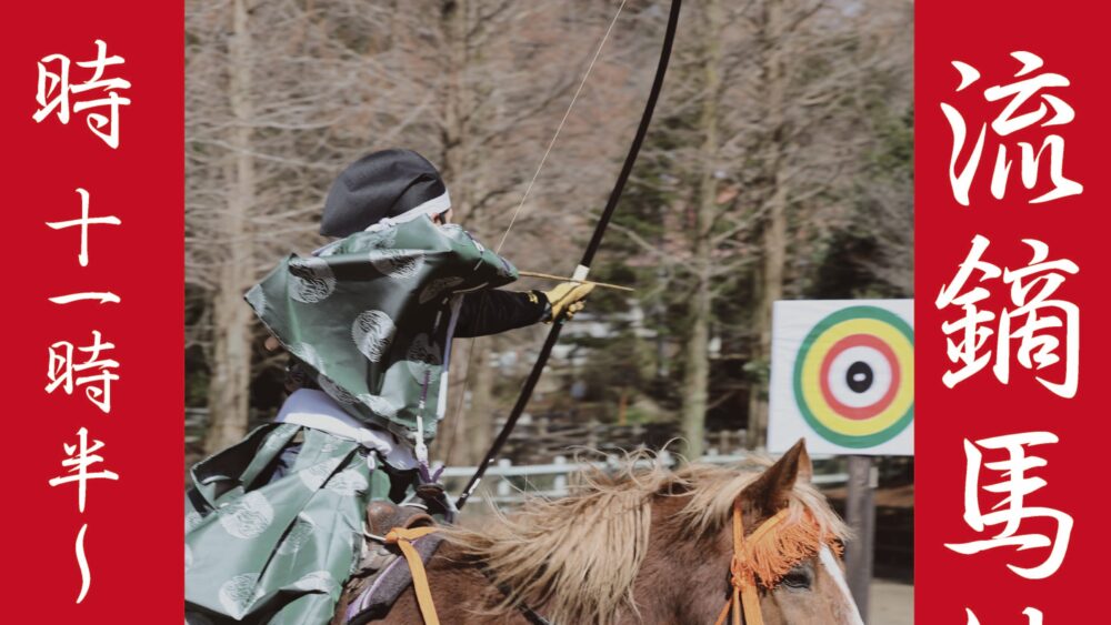 本物の弓を使った『流鏑馬(やぶさめ)』体験ができるみたい。4歳から参加可能。六甲山牧場